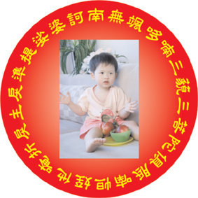 4.在個人的相片背面寫上姓名,然後將相片浮貼在咒輪中間空白處,這樣子
