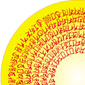 此次流通的寶篋印陀羅尼咒輪,黃底紅字,是以一種非常特別的悉曇梵文字型寫成。