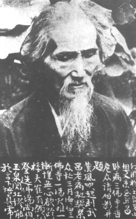 民國十五年(歲次丙寅八十七歲)春,老和尚在雲棲寺傳戒,十方緇素雲集,大德阿闍黎正登千花台,代佛宣揚菩薩心地戒本,殿前老梅枯枝忽生白蓮花數十朵,大如盂,微妙香潔,鬚如張寶蓋,大家正在驚奇,更看前後菜園,所有青菜盡放青蓮花,每花中心好像立一佛像。事屬稀有,張拙仙居士曾有詩記其事: